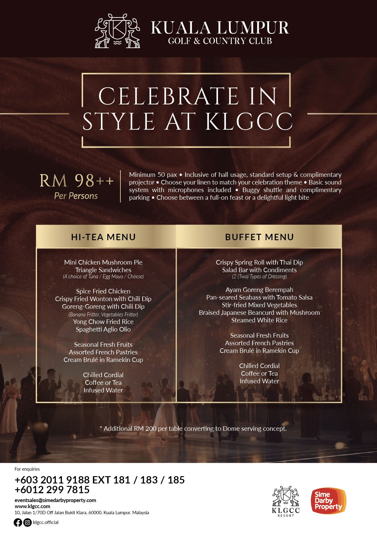 Elevate your celebration with our all-inclusive packages, starting from only RM98++ per person, which feature: